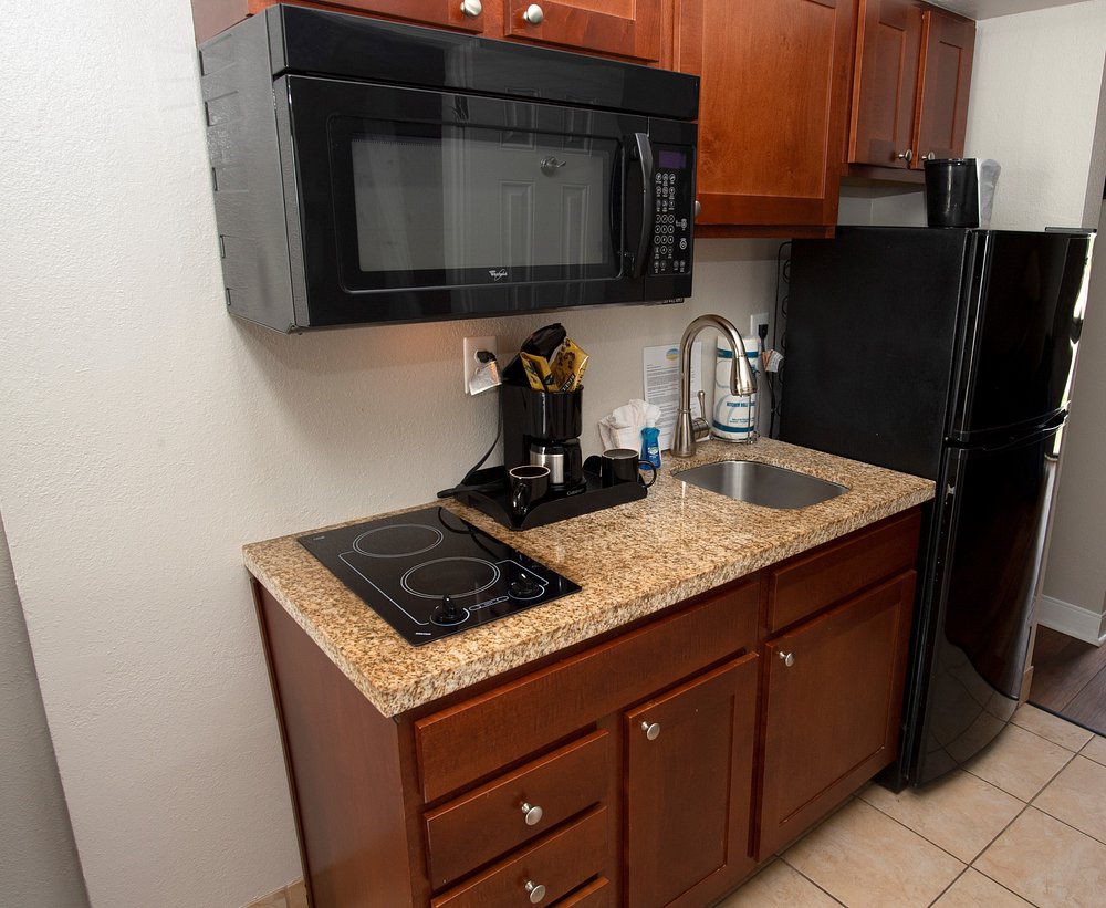 - Each guest room has a fully equipped kitchen, with full size refrigerator, 2 burner stove top & microwave.