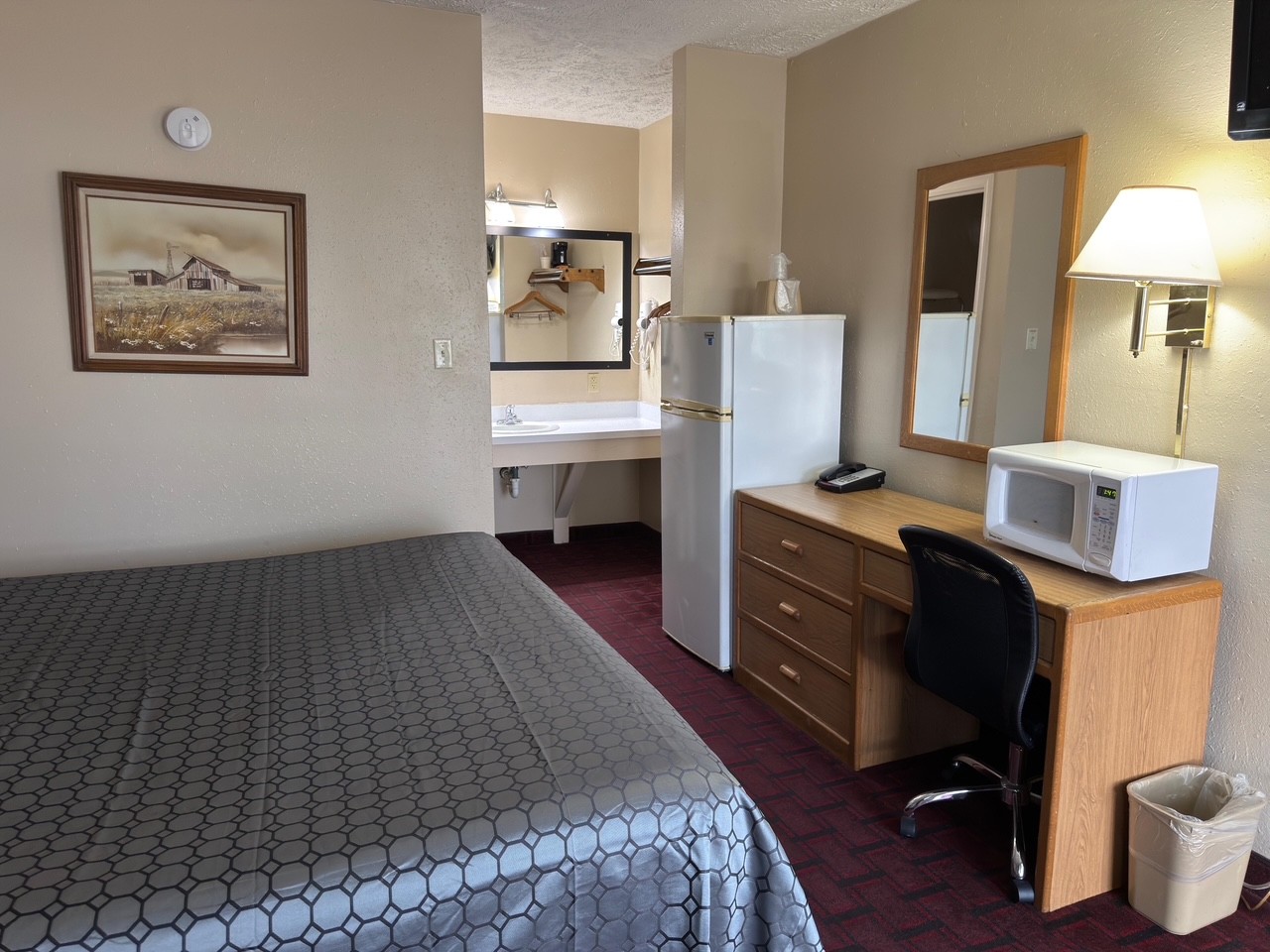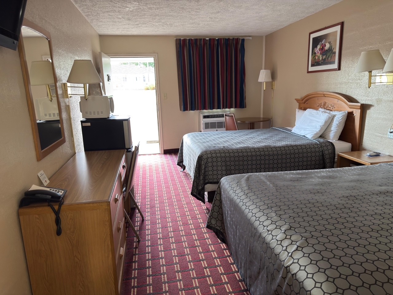 Guestrooms are presented across a mix of 15 single‑bed and 22 double‑bed keys, suited to both transient motorists and budget‑minded families/crews. Site functionality is excellent, with exterior corridors and ample surface parking (posted ratio 4.57/1,000 SF; marketing materials also note ~52 striped spaces) supporting easy arrivals for vehicles, trailers, and service trucks.
