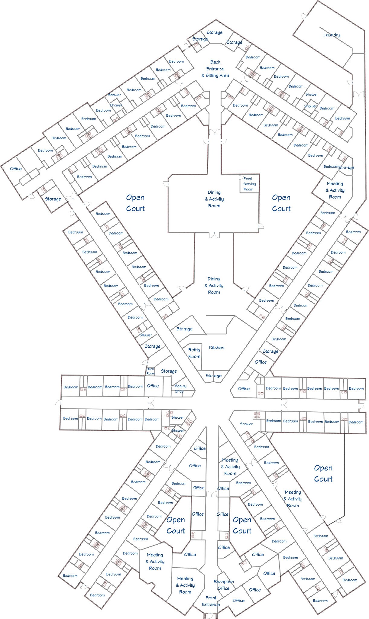 - 101 private bedrooms (59 private restrooms, 42 semi-private restrooms)